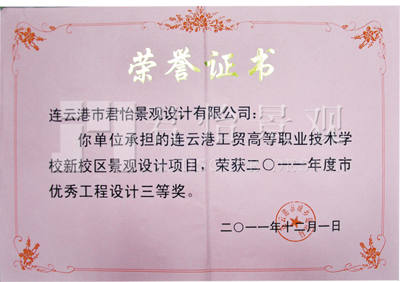 2011年獲獎證書