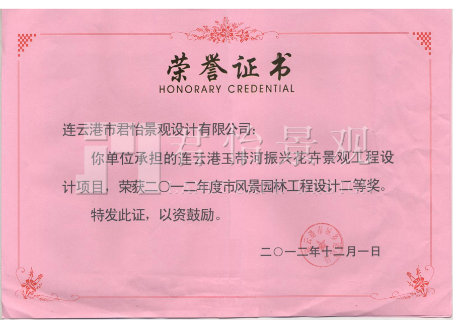 2012年獲獎證書