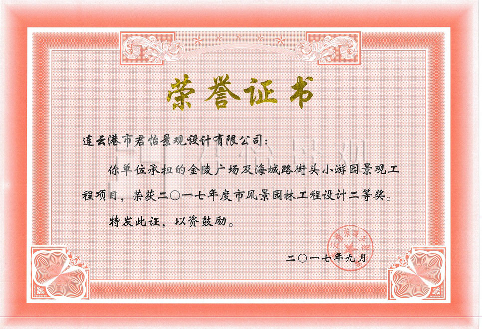 2017年獲獎證書